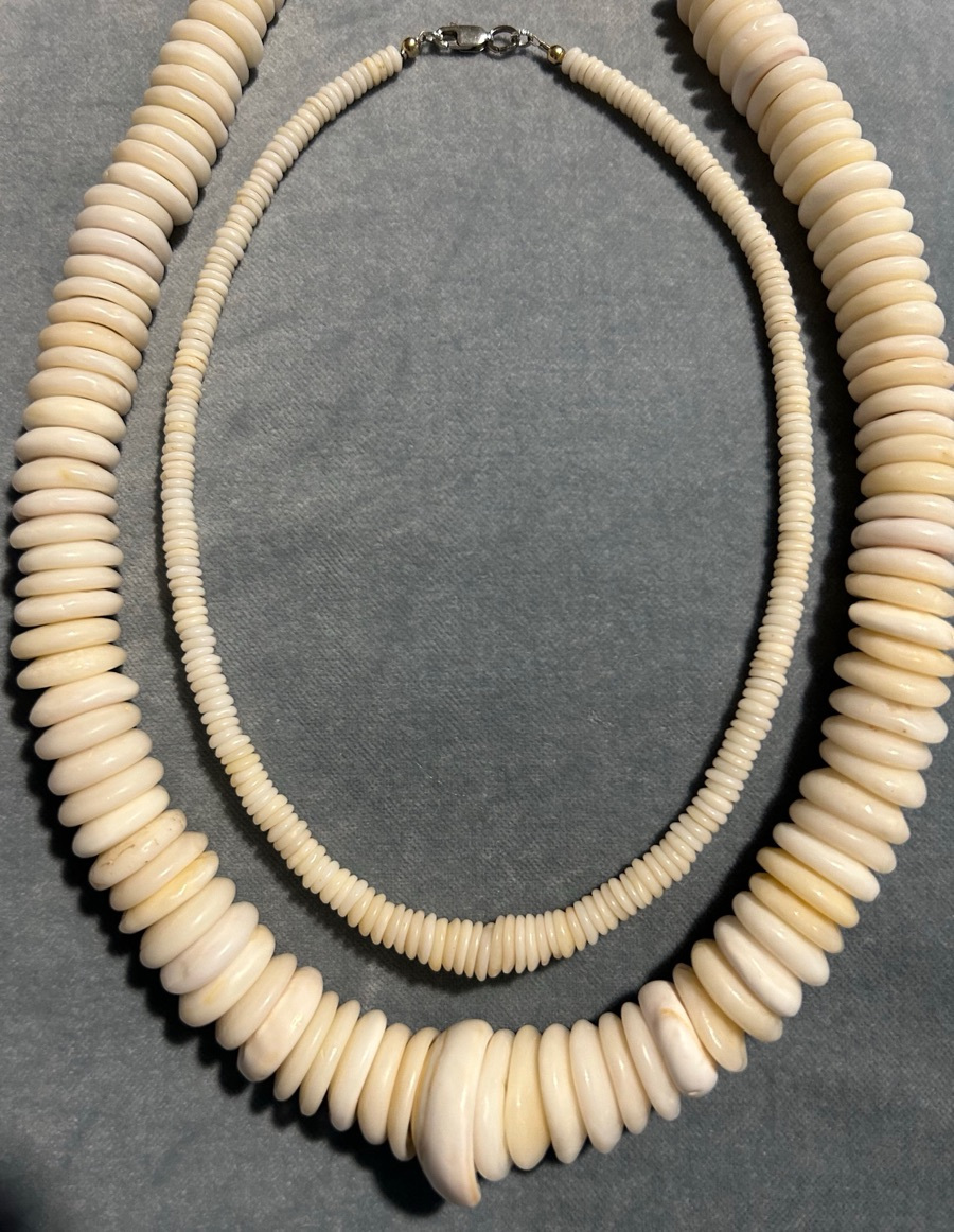 From the shores of Polihale beach of the beautiful island of Kauai, these shells took 100s of years in the making to enhance the neck lines of Kings of the Hawaiian Islands. Powerful Chiefs Rica, Dica, & Kica were presented & decorated with these eternal symbolic shells representing Honor, Power, & Love. Aloha